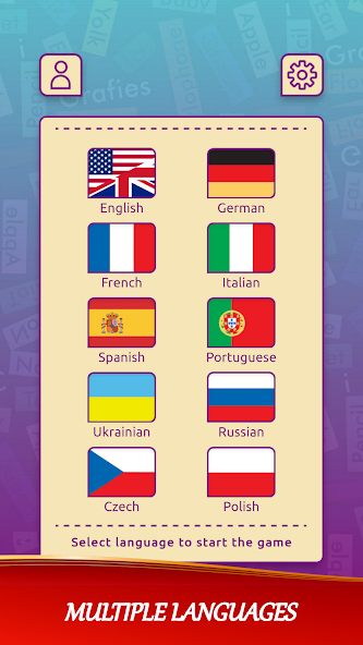 The game features multiple languages, including English, Spanish, French, German, Czech, and more — perfect for anyone who wants to learn or practice new words every day.